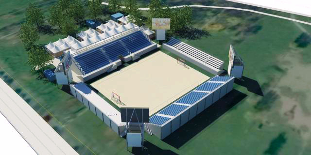 Србија ће ускоро добити први стадион за фудбал на песку. Изградња овог модерног спортског објекта траје већ неколико дана и требало би да буде завршена до 20. јуна. Стадион ће бити монтажног типа и заузимаће површину од око 4.400 квадратних метара.
