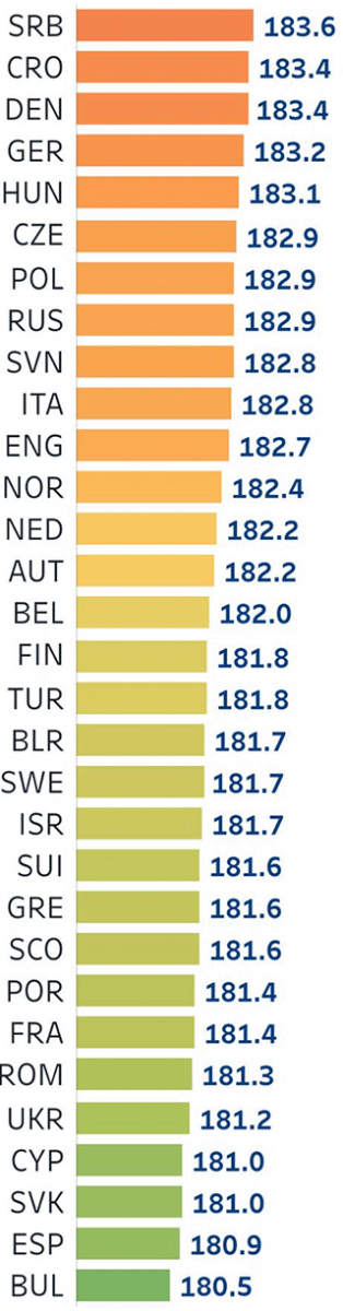 ФУДБАЛЕРИ У СУПЕРЛИГИ ПРОСЕЧНО ВИСОКИ 183.6, НА ДРУГОМ МЕСТУ ХРВАТСКА И ДАНСКА - 183.4