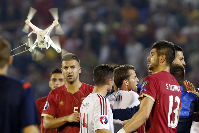 Утакмица Србије и Албаније играна је 14. октобра прошле године у Београду а прекинута је у 42. минуту после нереда у којима су учествовали играчи обе екипе и домаћи навијачи, након што се изнад терена на стадиону Партизана појавио дрон, који је носио заставу велике Албаније.