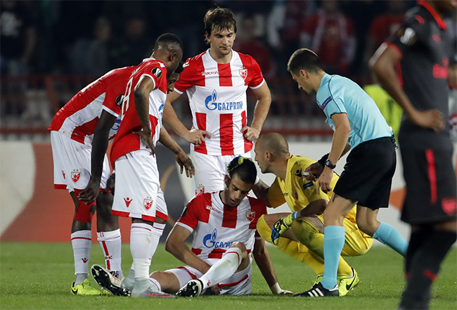 Дефанзивац Црвене звезде Вујадин Савић изашао је из игре пре краја меча са Арсеналом због повреде примицача.