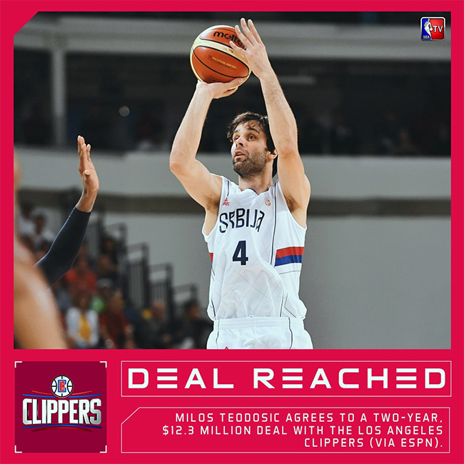 Милош Теодосић и званично је постао члан Лос Анђелес Клиперса, после чега се захвалио свим својим навијачима, а посебно „његовој Србији“.