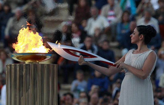 - Олимпијску бакљу на атинском стадиону Панатинаикоса руском вицепремијеру Дмитрију Козаку предао председник Националног олимпијског комитета Грчке Спирос Капралос