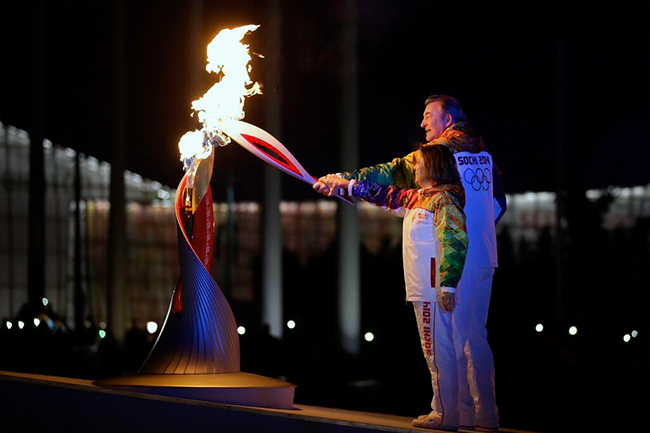 Олимпијску ватру у Сочију запалили Вјачеслав Третјак и Ирина Родњина
