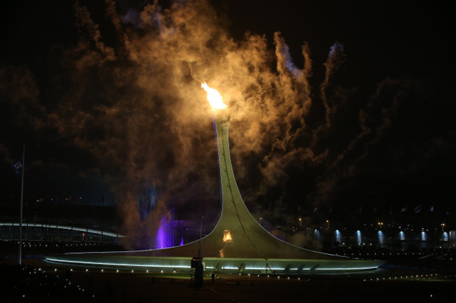 Олимпијски пламен ие на стадион „Фишт” стигао у 22.04. Претходно су сви учесници церемоније и милиони тв-гледалаца широм света имали прилику да посматрају величанствени ватромет.
