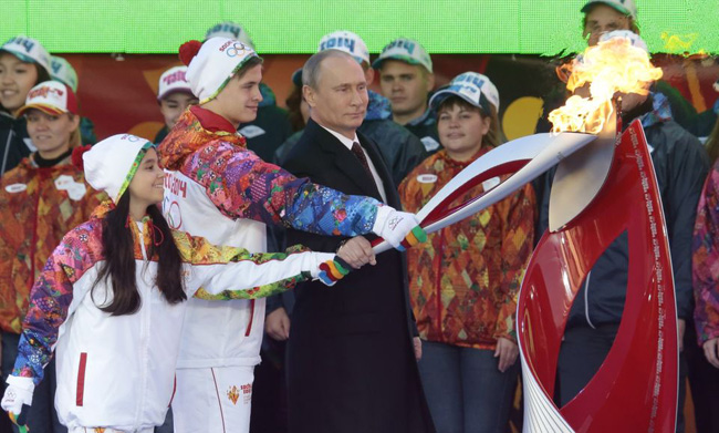ПРЕДСЕДНИК Руске Федерације Владимир Путин – на свечаности на московском Црвеном тргу – дао је знак за старт штафете олимпијског пламена који ће, на путу кроз РФ дугом 65.000 километара, пронети 14.000 спортиста.