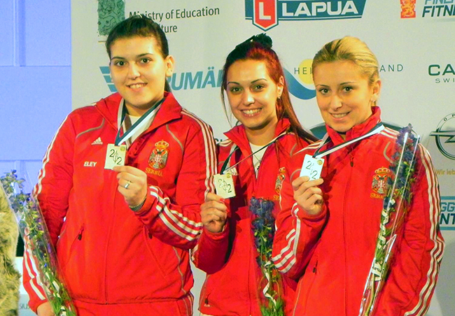 ЖЕНСКА сениорска репрезентација Србије ваздушном пушком освојила је сребрну медаљу на Шампионату Европе у финском месту Виерумаки са 1.188 кругова и 92 центра (Андреа Арсовић 397, Драгана Тодоровић 396, Ивана Максимовић 395).
