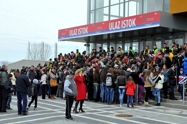 Одушевљени што је Новак Ђоковић одлучио да се тренинг Дејвис куп репрезентације Србије отвори за јавност, и што неће морати да купују карте којих скоро да није ни било у продаји, навијачи су похрлили ка насељу Рибница већ од јутарњих сати. До 12 сати на хиљаде њих је стајало испред западне и источне стране дворане, чекајући да им обезбеђење да знак да је улаз слободан.