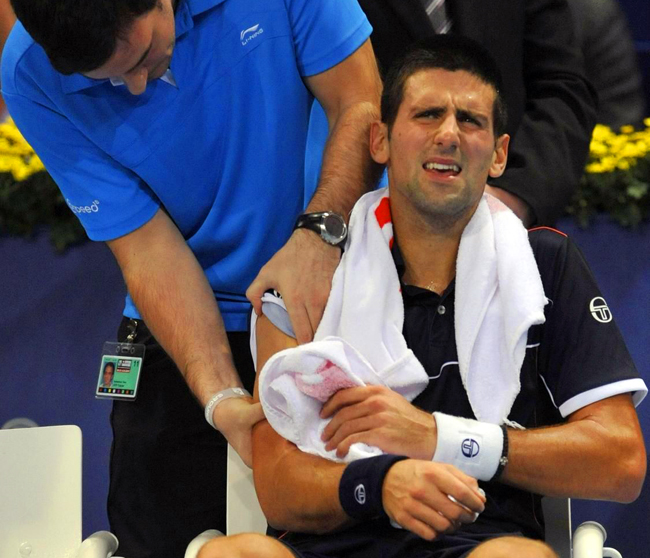 БАЗЕЛ, (ФоНет) - Најбољи тенисер света Новак Ђоковић обновио је повреду рамена, са којом има проблема од лета, а после пораза од Јапанца Кеија Нишикорија - 2:6, 7:6 (7:4), 6:0 - у полуфиналу турнира у Базелу, рекао је да није сигуран да ли ће наредне седмице моћи да игра на мастерсу у Паризу.