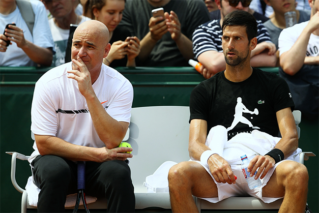Пре неколико недеља, опет изненада, ангажовао је за саветника и сарадника некадашњег истакнутог тениског аса Андре Агасија, једног од пет-шест најуспешнијих играча свих времена. Треба поменути да Агаси никада до сада није био тениски тренер, али је прихватио позив Ђоковића за сарадњу.