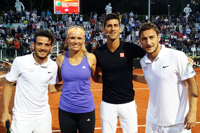 Какав је то тандем - Ноле и Тоти, на „Форо Италику“... Хуманитарна манифестација „Тенис са звездама“ у Риму привукла је велику пажњу, а главне звезде били су легенде попут Новака Ђоковића и „принца Рима“ Франческа Тотија. И то на истој страни. Ноле се већ раније доказао на фудбалским теренима, а сада је био ред на Тотија да покаже колико је талентован за тенис. И није разочарао! Играли су против Тотијевог саиграча Алесандра Флоренција и Каролине Вознијацки и направили истински спектакл.