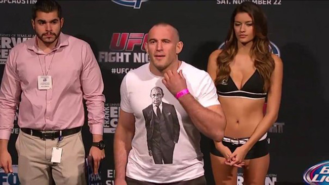 УКРАЈИНСКИ ММА-борац Алексеј Олејњик, који се на званичном мерењу појавио у мајици са ликом Владимира Путина, победио је на Апсолутном борилачком шампионату (UFC) у Остину, у Тексасу, Американца Џареда Рошолта.
