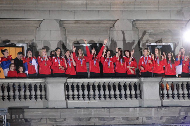 Златне одбојкашице Србије на шампионском балкону Скупштине Београда
