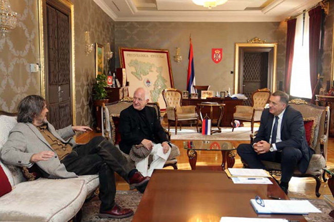 ПРЕДСЕДНИК Републике Српске и нивоизабрани српски члан Председништва БиХ Милорад Додик, разговарао је данас у Бањалуци са познатим светским филмским редитељом Емиром Кустурицом и највећим српским песником Матијом Бећковићем.