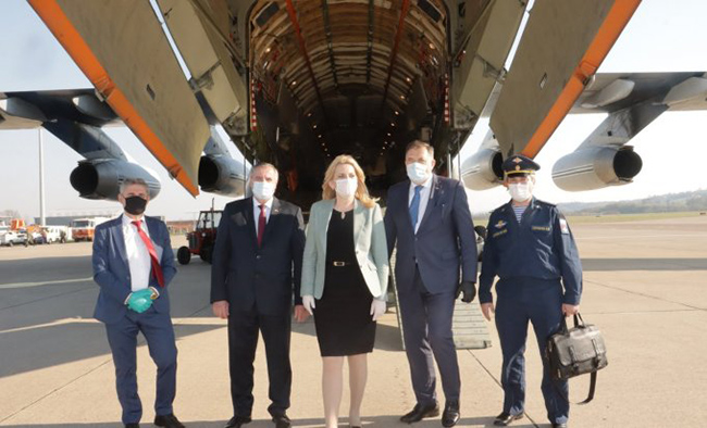 Додик је пред слетање првог Ил-76 рекао да у Републику Српску из Руске Федерације долази 25 стручњака да би помогли у борби против вируса корона, те још два велика транспортна авиона са медицинском опремом и потрепштинама које је Русија донирала Српској.