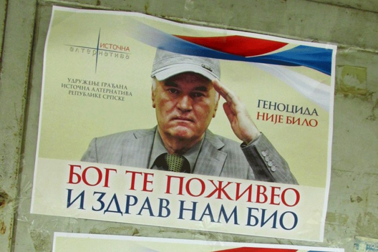 АКТИВИСТИ Удружења грађана Источна алтернатива данас су на неколико огласних места у Сребреници излепили плакате са ликом генерала Ратка Младића и натписом "Геноцида није било" и "Бог те поживио и здрав нам био".
