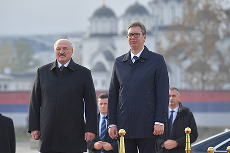 * Лукашенко 1999. године посећује Београд под бомбама, да би изразио солидарност са Србијом и оштро осудио злочиначку агресију НАТО. Белорусија је 2020. године Србији поклонила више борбених авиона и друге војне опреме одбрамбеног карактера. Белорусија принципијелно подржава суверенитет и територијални интегритет Србије, није признала нити једнострану сецесију КиМ, нити били чиме показује да би такав став променила. Лукашенкова Влада је подржала и бесцаринску трговину Србије и ЕАУ