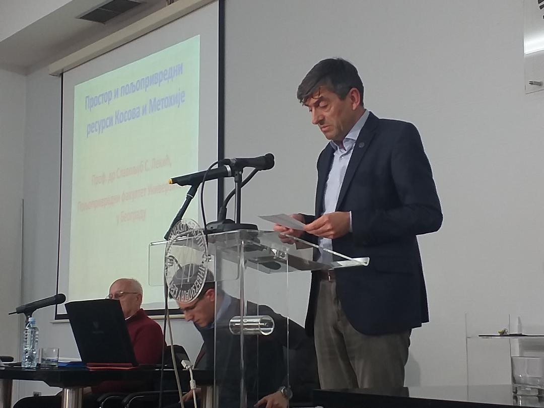 Славољуб ЛЕКИЋ, професор Пољопривредног факултета БУ реч на деветој трибини о КиМ „Реинтеграција или разграничење“