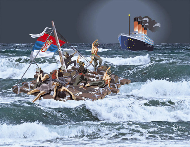 Представници ЕУ бирократије се заклињу у неповредивост граница, напишу једно у резолуцији 1244 па признају „Косово”. Они се придржавају закона а пливају у корупцији, они воле слободно тржиште, али да њихове фирме добију повољне услове у приватизацији. Они подстичу имигранте а после нама прете увођењем виза…