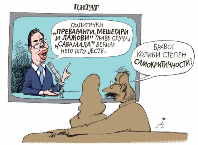 - Цвијетин МИЛИВОЈЕВИЋ: Руше га и његови велики пријатељи: Вашингтон, Берлин и Лондон. Не верујем да га руши ико други из ЕУ, а поуздано знам да га не руше Пекинг и Москва. Зашто га руше они које је називао западним пријатељима? Можда им је обећао нешто? Он то боље зна од мене. Можда им је он обећао да ће и Србија да брже призна Косово? Руше га и изнутра, из његове СНС. Зашто? Можда их је преварио. Можда су мислили да улазе у неку патриотску странку, па сада кажу: „ови дадоше све за два поглавља“