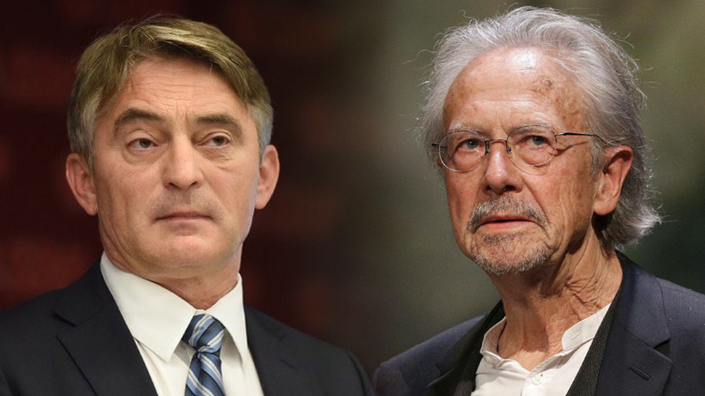 * У Босни се Петер Хандке слично провео као Иво Андрић. Нико у Сарајеву није ни покушао да оспори Хандкеове литерарне вредности. Али, шта му вреди што му Нобелов комитет признаје генијалност кад Башчаршија има своје критеријуме: „Био је на Милошевићевој сахрани у Пожаревцу умјесто на Алијиној ђенази на Ковачима“. А компетентну оцјену личности и дела дала је НВО
