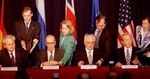 Зашто овај споразум сви упорно зову „дејтонски“, а не „париски“, иако је свечано потписан и писмено гарантован у Јелисејској палати у Паризу? У европској пријестоници крајем '95. године окупили су се предсједници и премијери великих сила. Клинтон, Кол, Мејџор, Ширак, Черномирдин, пред камерама су стали иза споразума.