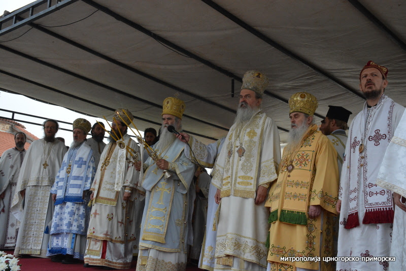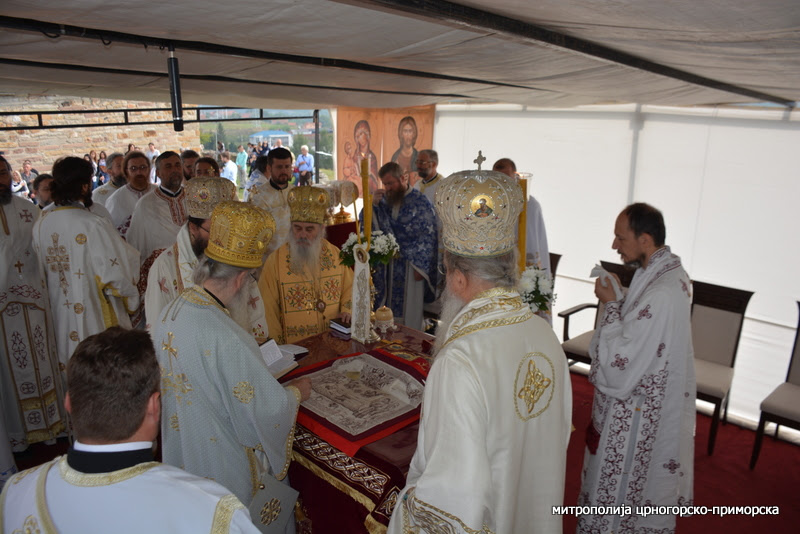 Свету архијерејску литургију служили су Високопреосвећени Митрополит црногорско-приморски г. Амфилохије, Преосвећена господа епископи: рашко-призренски Теодосије, жички Јустин, полашко-кумановски Јоаким, милешевски Атанасије и захумско-херцеговачки Димитрије са свештенством и вјерним народом.