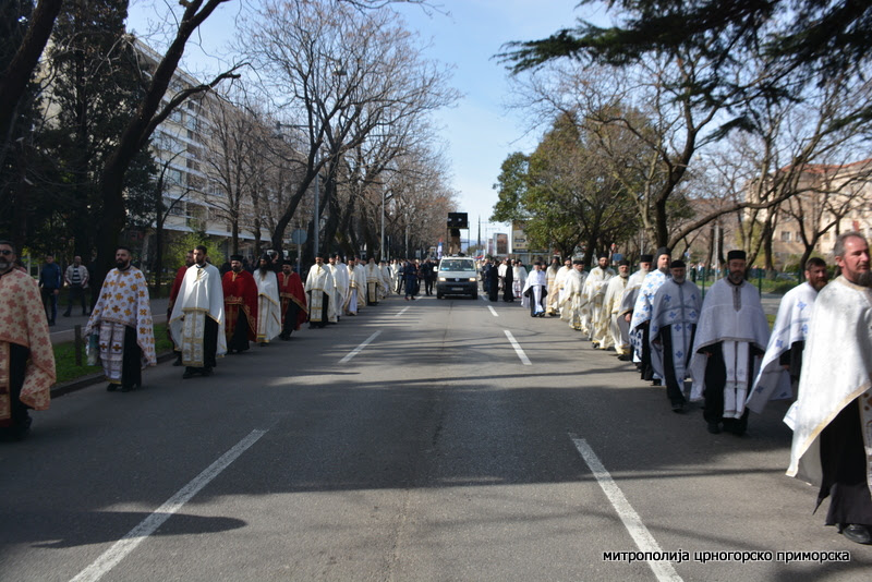 Светковина је почела Светом архијерејском литургијом у саборном храму Васкрсења Христовог, којом је началствовао Митрополит кијевски и све Украјине Онуфрије, који борави у тродневној посјети Митрополији црногорско-приморској.