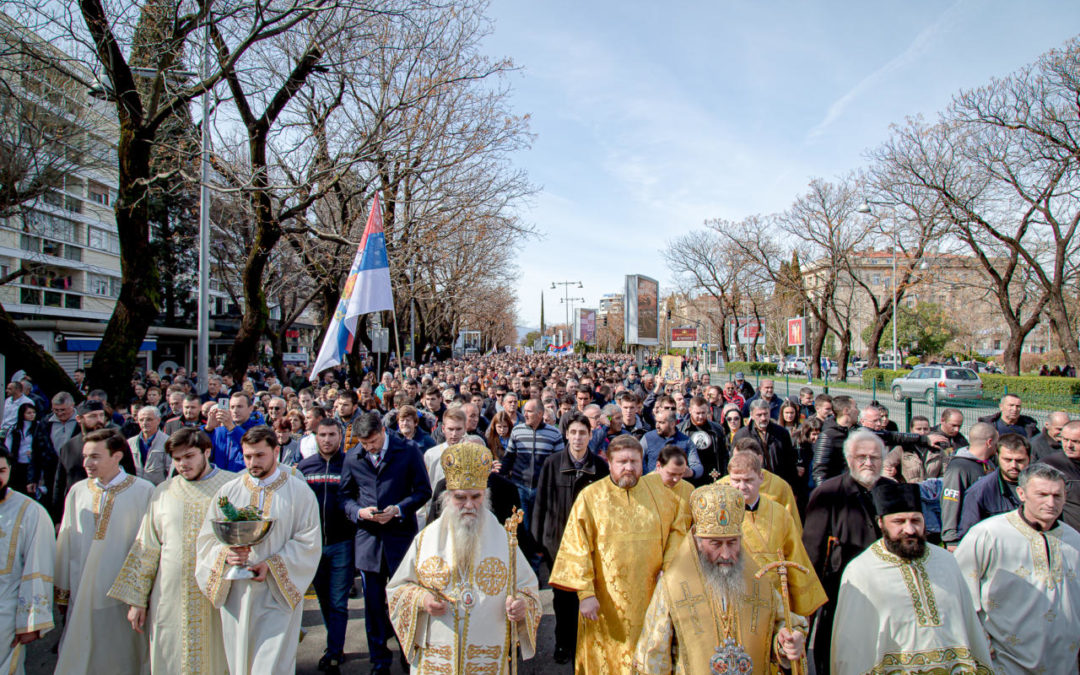 „Русија и Србија јесу овде са нама, али овде са нама је сав православни свет истока и запада. Поменух овде и браћу муслимане, и оног њиховог чувеног теолога из Азије, који је поручио свим муслиманима Балкана да подрже православне хришћане у одбрани светиња јер осећа да онај ко угрожава светиње православне, светиње већине народа, он ће сутра пљунути и угрозити и џамије јер један закон кад се доноси, не може бити да важи само за једне“, рекао је митрополит.