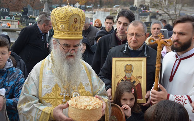 МИТРОПОЛИТ Амфилохије подсетио је вернике у храму Светог оца Николаја у Бандићима на речи апостола Павла да у Цркви нема ни Грка ни Јеврејина, ни роба ни слободњака, ни мушкога бни женскога.