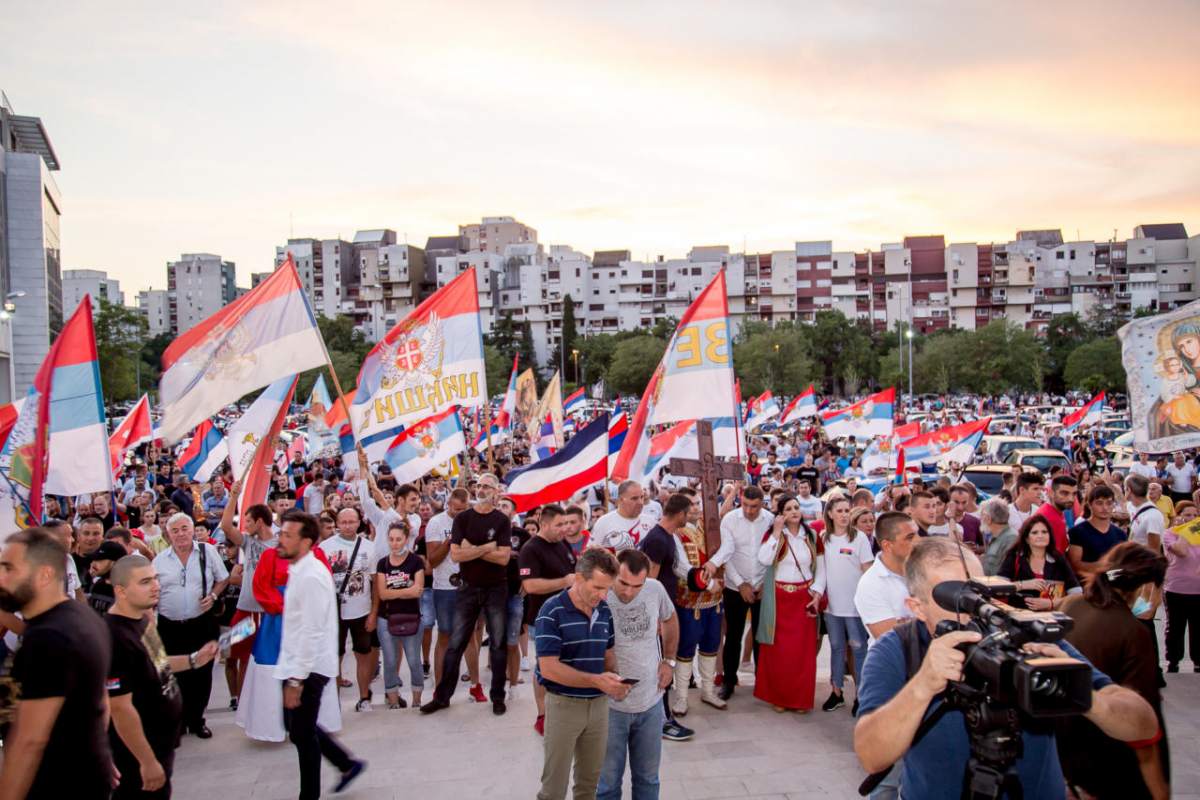 ОБРАТИО СЕ НАРОДУ КОЈИ ЈЕ СТИГАО ПРЕД ХРАМ ХРИСТОВОГ ВАСКРСЕЊА ИЗ НИКШИЋА, КУЧА, БРАТОНОЖИЋА…
