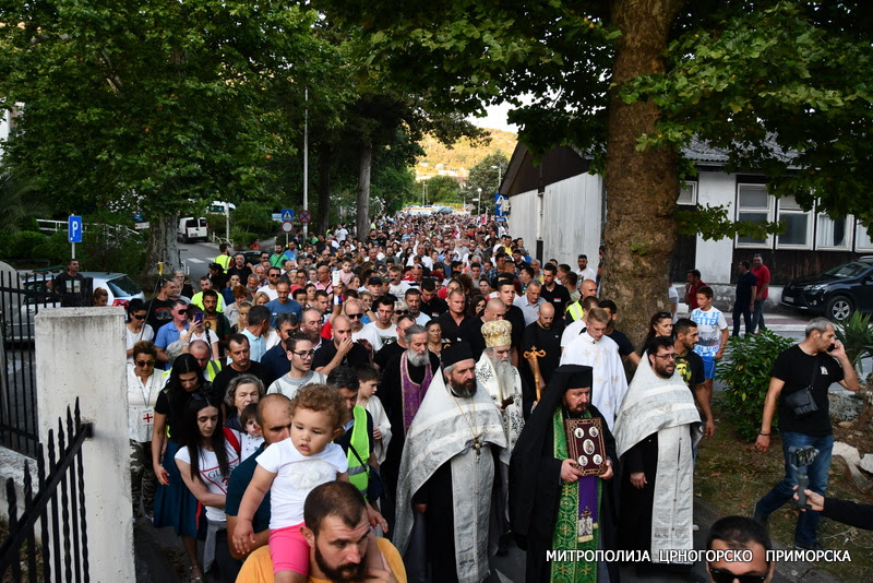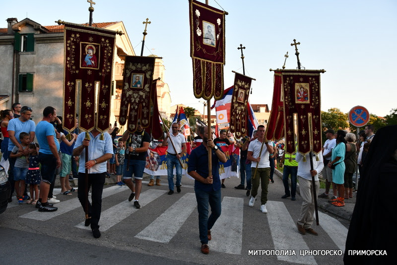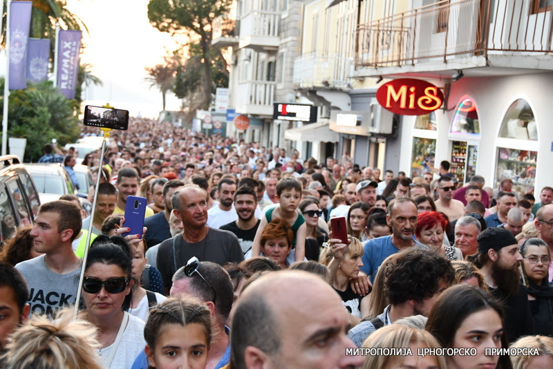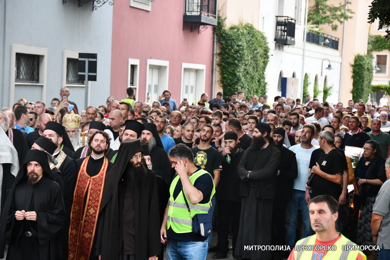 НАКОН што је вечерас са свештенством служио Молебан Пресветој Богородици у Храму Светог Саве у Тивту, Његово високопреосвештенство Архиепископ цетињски Митрополит црногорско-приморски г. Амфилохије је градским улицама предводио свенародну литију за одбрану светиња у којој је учествовао велики број вјерног народа.