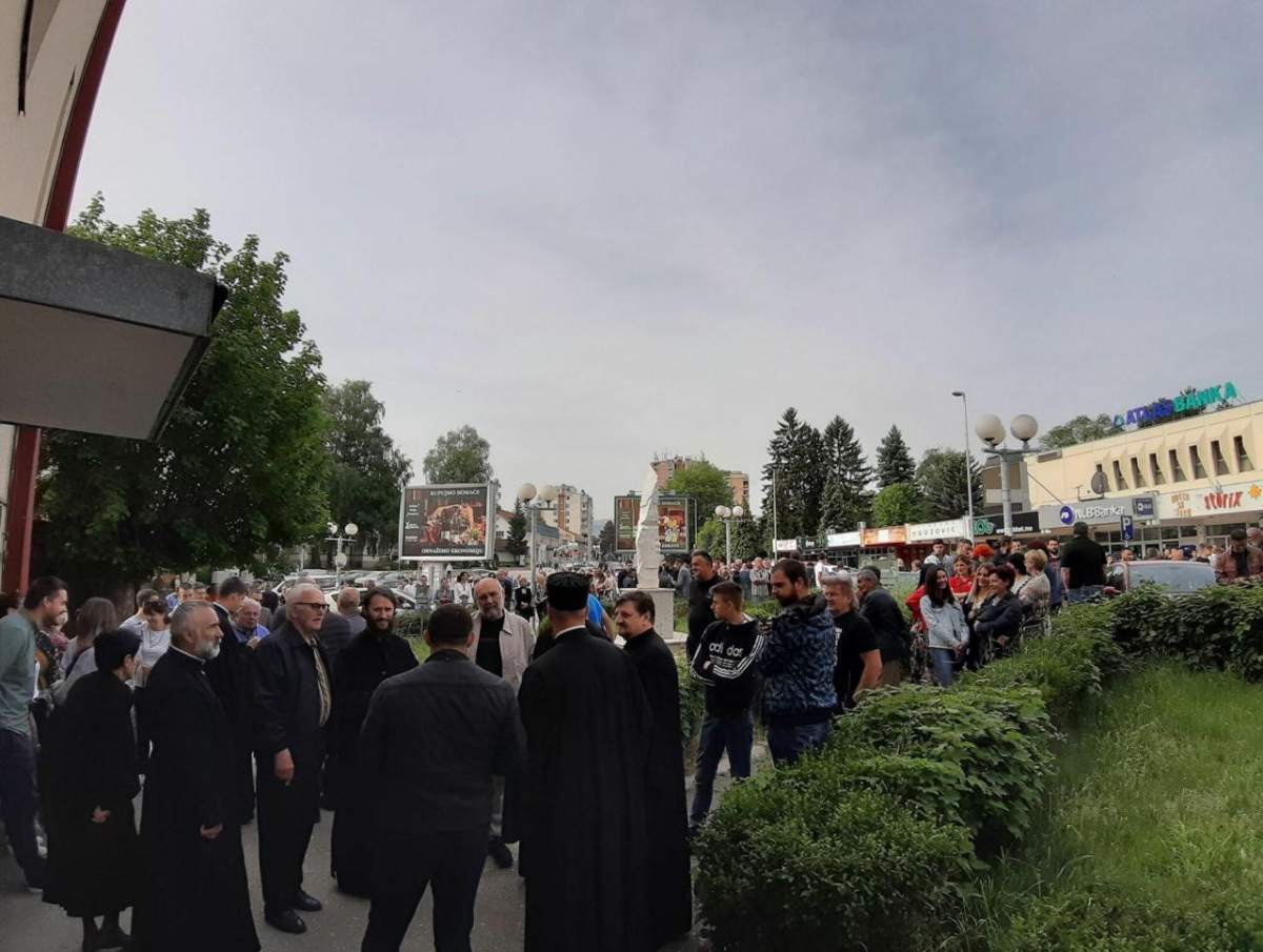Грађани окупљени испред ОДТ су се након обраћања и молбе једног од свештеника мирно разишли.