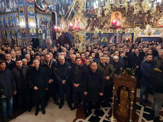 Молебану, који је служио епископ зворничко-тузлански Фотије, осим представника борачких организација из свих места у регији, присуствују чланови навијачких удружења, омладинских организација, мноштво деце, окупљених под заставом Републике Српске и са поруком охрабрења браћи.