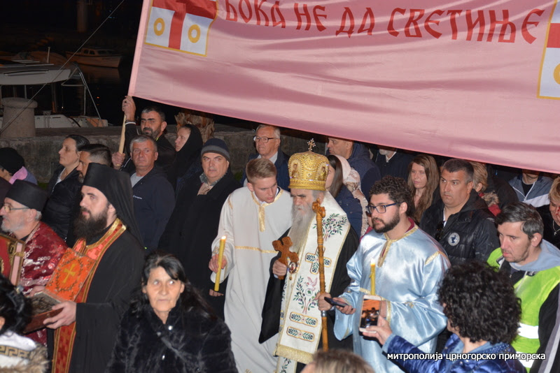 „Ја вјерујем докле се не скине то безакоње да нећете наћи ни једног ни Бокеља, ни Црногорца ни Брђанина који ће гласати за тако безакоње и за оне који тако безакоње отимања светиња устоличују први пут у историји Црне Горе. У Бога се надам да међу вама Бокељима неће бити оних који ће гласати за то безакоње и за оне који подржавају то безакоње, без обзира ко они били“, поручио је Владика Амфилохије.