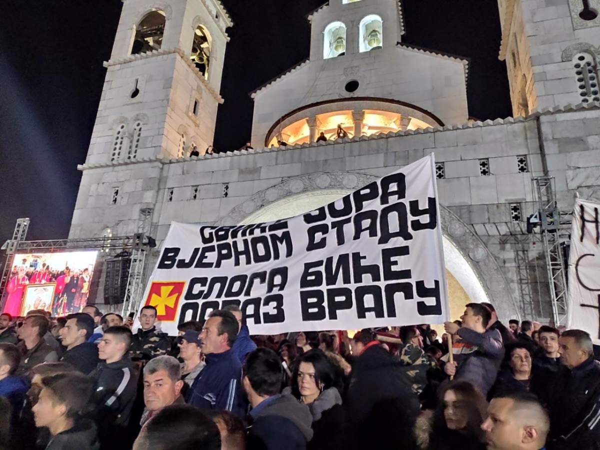 – Не идемо само за спас светиња у Црној Гори већ за спас светиња на Kосову и Метохији, Даламацији, Републици Српској, БиХ, за све наше светиње. Ставимо се у позицију да је неко дошао да узме нашу цркву. Ако сад не изађемо може једнога дана и нама закуцати на врата – наведено је у прогласу који је прочитао отац Макарије.