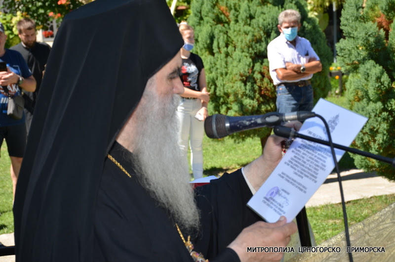 Владика је прочитао текст који ће бити уграђен у темељ капеле у патријарховим родним Врујцима, која ће бити изграђена у славу Божију и у част Светога исповједника Патријарха српскога Гаврила Дожића, као копија срушене ловћенске цркве Светог Петра Цетињског.