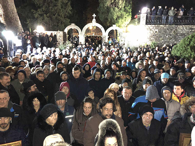 – Сви смо, и вечерас као и претходних ноћи, једно тело и једна душа. Оно што нас је снашло је то да је народ устао, да се народ ујединио и да је као много пута кроз историју тек кроз молитву, тек са својом Црквом схватио колико је јак и колико моћан. Овај народ и ова борба за наше светиње биће камен о који ће се сломити свака диктатура. Стотинама година су освајачи долазили и пролазили, туђини и домаћи издајници, политичари овакви и онакви, ударали су и на народ и на Цркву, али нису успели сатрти нити једно нити друго. Кад смо стајали заједно и где смо се сабирали заједно - ту је и Бог био са нама. Овај ће Божић остати упамћен као Божић на коме су браћа стајала раме уз раме у одбрани својих светиња, победила још једном сотону и истерала га из своје куће и свог дворишта“.