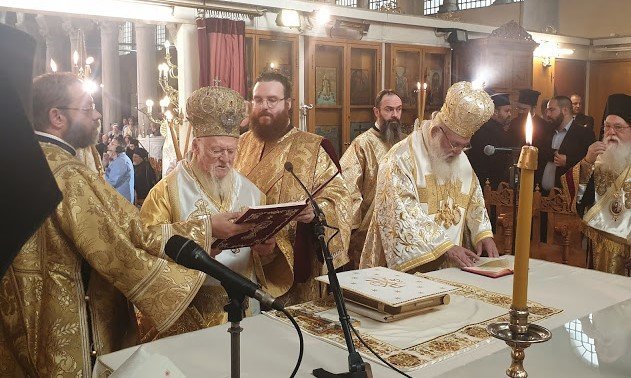 У СУБОТУ, 19. октобра текуће године, Патријарх цариградски Вартоломеј и Архиепископ атински Јероним служили су саборну архијерејску Литургију, уз саслужење више епископа и клирика, у древном храму Нерукотвореног образа Христовог у Солуну (Ахиропиитос).