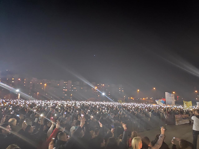 ДЕСЕТИНЕ хиљада Подгоричана и вечерас се сабрало око саборног храма Христовог Васкрсења, на молебану Пресветој Богородици за спас православних светиња.