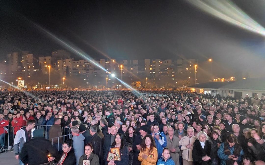 МНОГЕ хиљаде верника и вечерас су присуствовале молебану и литији у граду Светог Василија Острошког.