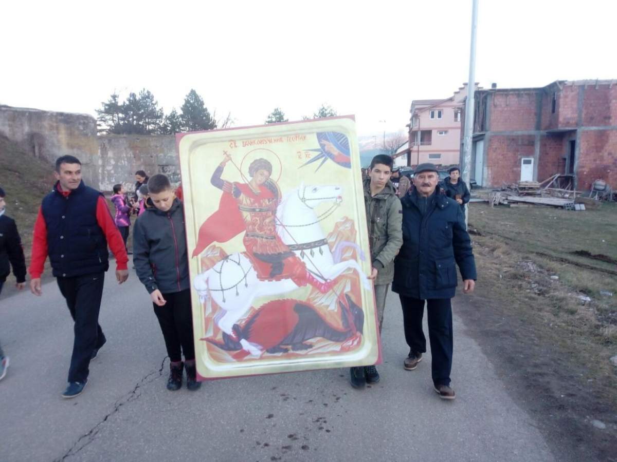 * БИЈЕЛО ПОЉЕ: Молитвени ход од цркве Светих апостола Петра и Павла, где је служен молебан Пресветој Богородици за одбрану светиња, до храма Светог оца Николаја Мирликијског у Никољцу