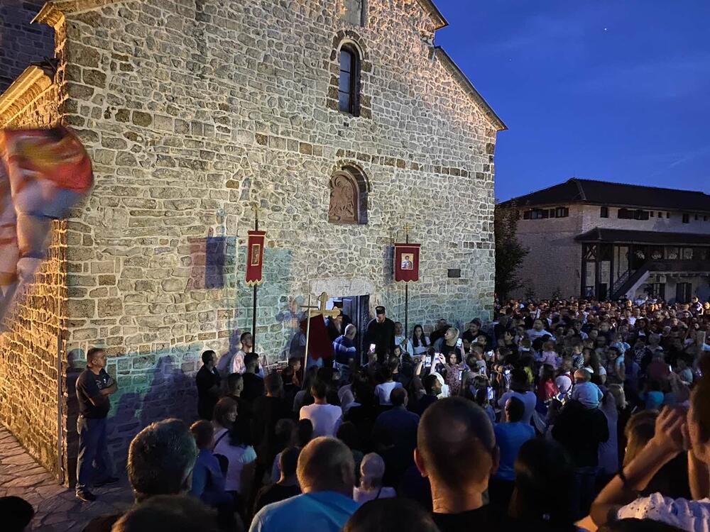 * И велики број грађана Бијелог Поља изашао да подржи СПЦ у одбрани светиња, носећи иконе, тробојке, певајући родољубиве песме о Косову и Метохији и српским јунацима, а на челу свечане литије била су деца са иконама