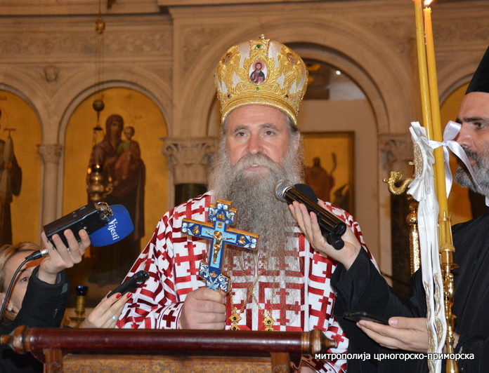 - Љубав нашег народ према Цркви и његова оданост светињама, његова безрезервна подршка свештенству и архијерејима дошла је посебно до изражаја од када смо отворено и брутално нападнути од неокомунистичке власти у Црној Гори. Вјерујући народ је брзо и правилно схватио да је тзв. Закон о слободи вјероисповијести усвојен од стране владајуће већине у Скупштини Црне Горе са циљем да се угрози слобода вјере, канонски поредак, идентитет светиња и опстанак Српске православне цркве и њених светиња у Црној Гори.