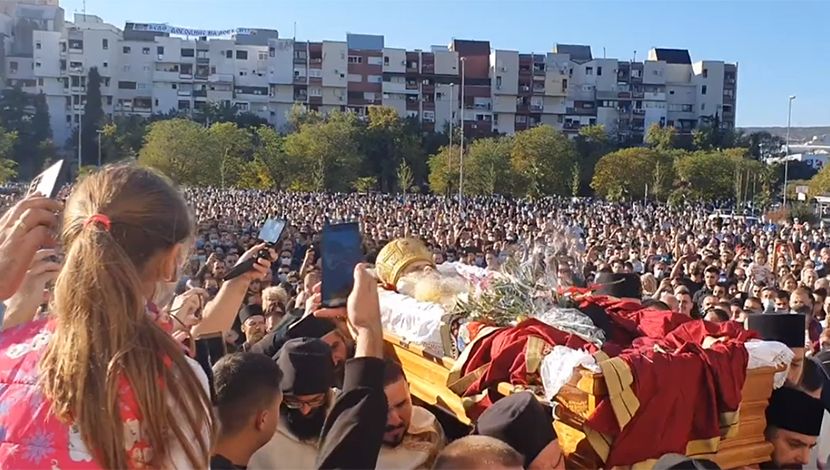Ковчег са Митрополитовим земним остацима пронијет је кроз хиљадама људи испуњену порту и унијет у Храм Христовог Васкрсења, гдје ће вјерни моћи да се до сахране сјутра поклоњају своме пастиру који је 30 година био на трону Светог Петра Цетињскога.