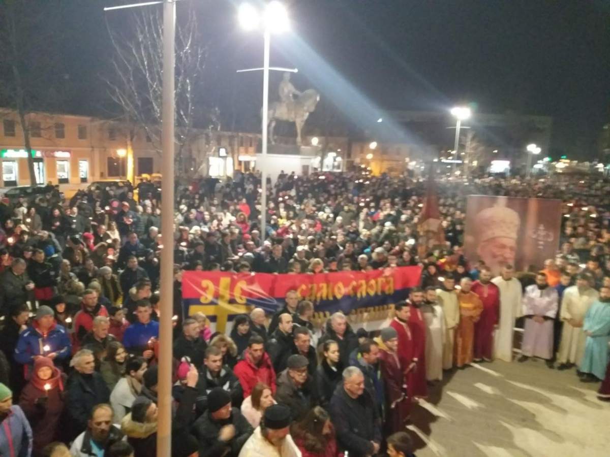 ДЕСЕТИНЕ хиљада Никшићана и поново су, након молебана у Саборној цркви Светог Василија, прошле у литији градским улицама.