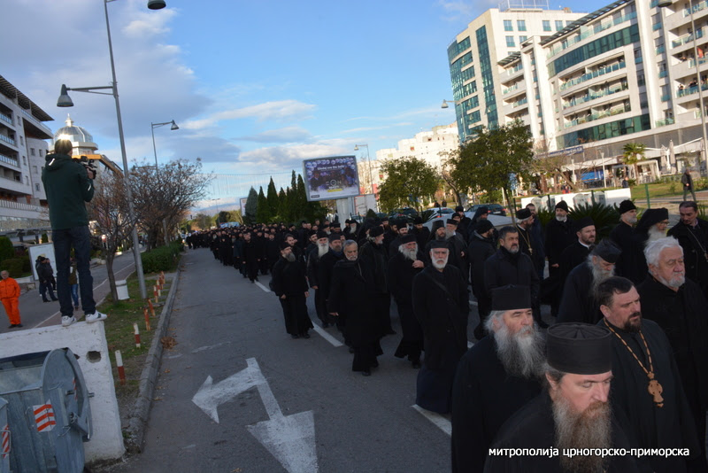 Претходила му је протестна литија од Саборног храма, коју су предводили Митрополит црногорско-приморски Амфилохије и Епископи будимљанско-никшићки Јоаникије и диоклијски Методије.