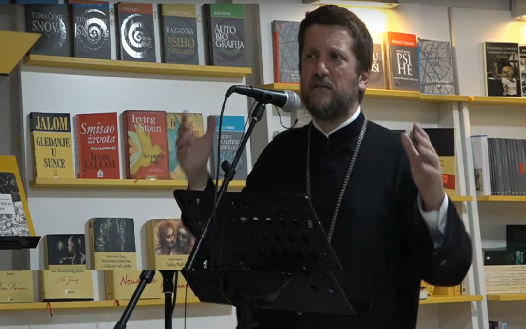Књижара Матице српске у Подгорици била је тијесна да прими све оне који су жељели да чују бесједу пароха цетињског о паралелама између Библије и Црне Горе кроз њену историју.