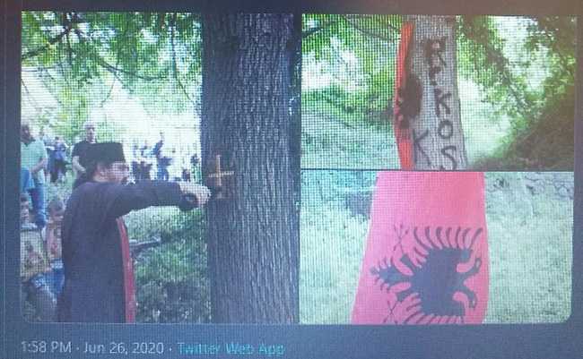 „После традиционалне Духовске Литије у повратничком селу Љубожда код Истока локални Албанци су оскрнавили знак крста на дрвету.