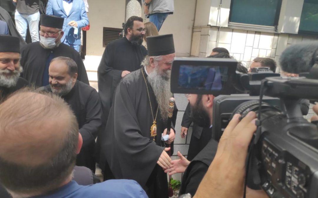 У знак подршке владици и свештенству испред суда се сабрао велики број свештеника, али и народа који скандира “Не дамо светиње”.