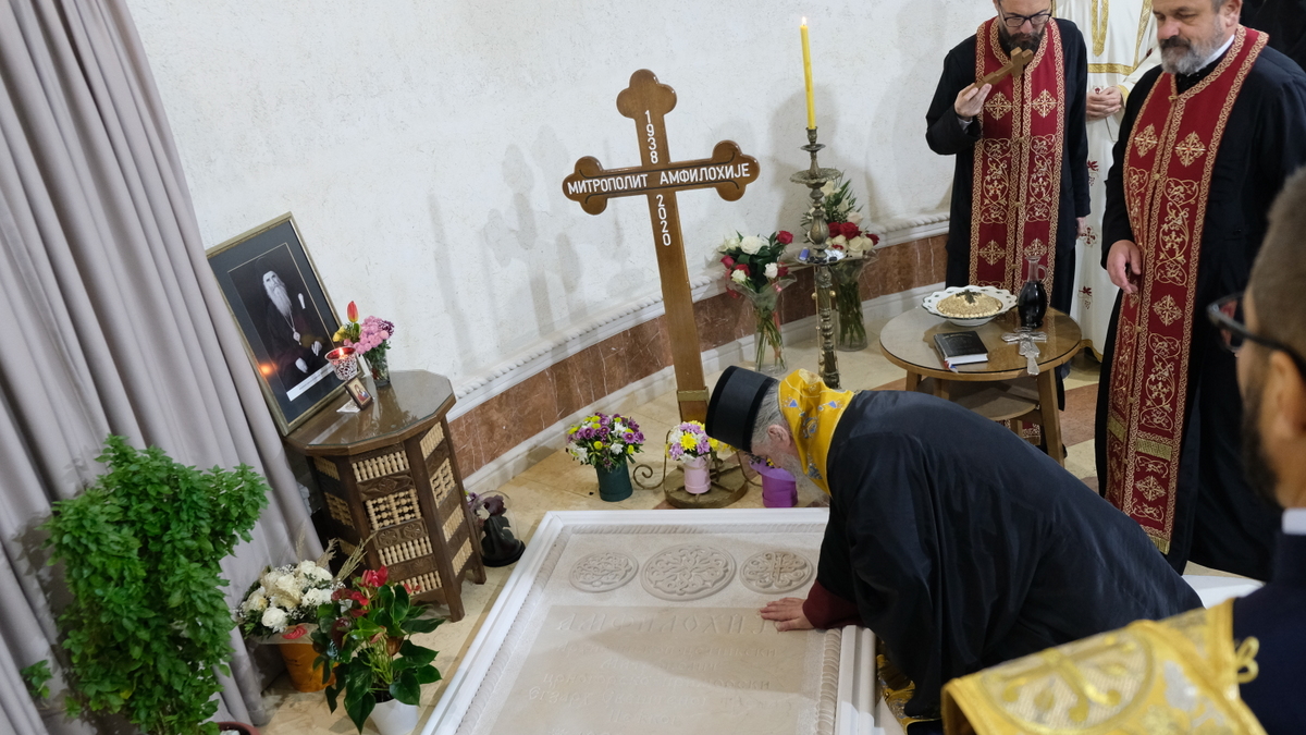 У САБОРНОМ Храму Христовог Васкрсења у Подгорици јутрос је, на празник Светог Димитрија Солунског – Митровдан, служена заупокојена Архијерејска литургија са седмодневним поменом блаженоупокојеном Архиепископу цетињском Митрополиту црногорско-приморском Амфилохију.